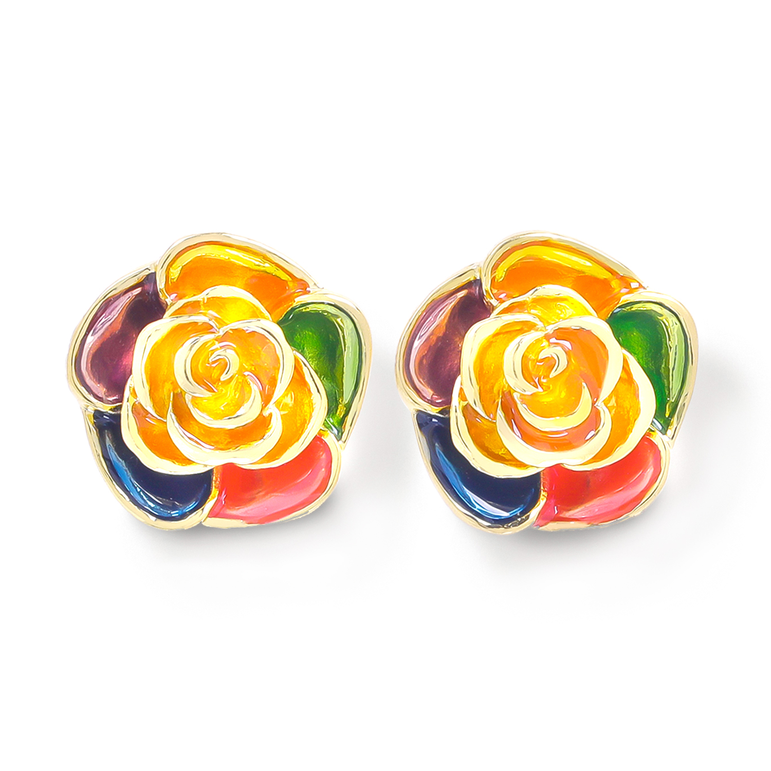 Retro Colorful Flower Stud Earrings